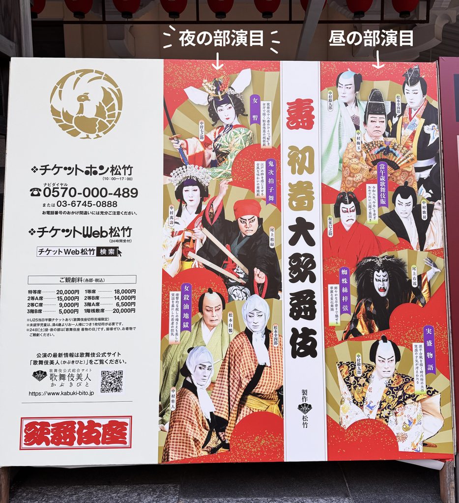 昼の部も夜の部もお正月ならではの華やかで派手な演目ばかりなのでどちらにするかすごく悩みました。