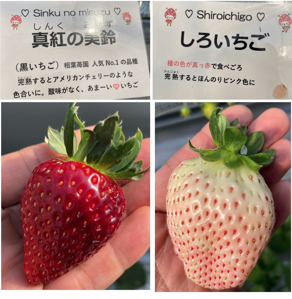 この2品種は、色が完全に他のいちごと違い、黒いちご(真紅の美鈴)と白いちごと