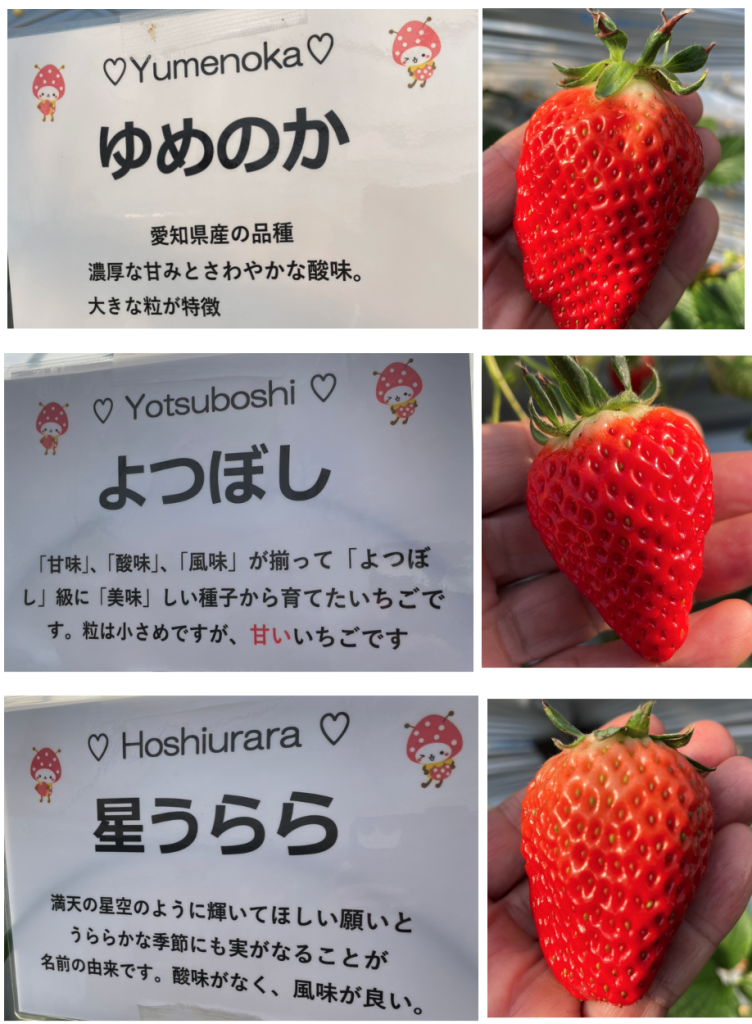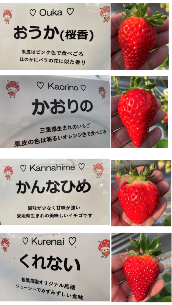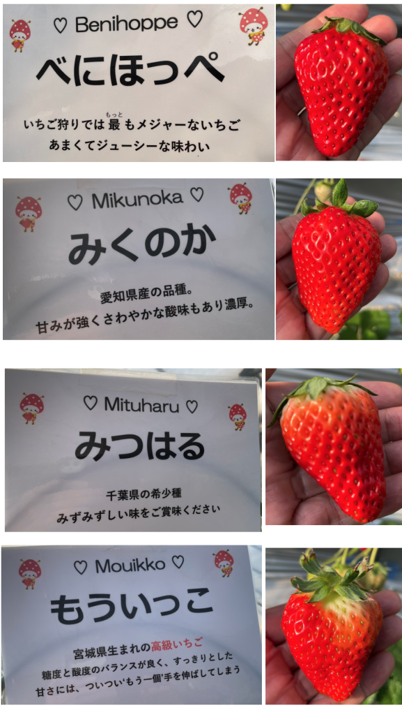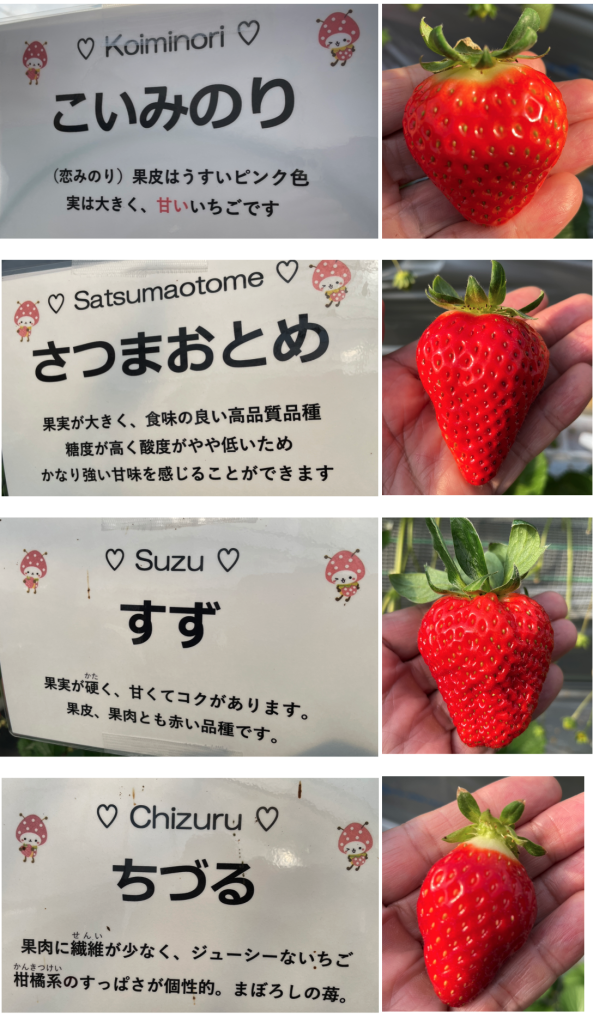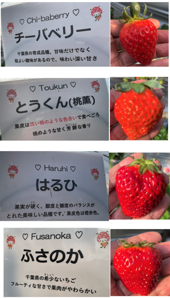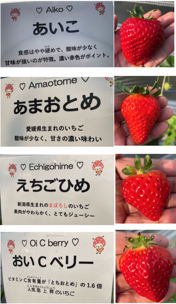 栽培していて、いちご狩りの食べ放題50分でいろんないちごを楽しめます。